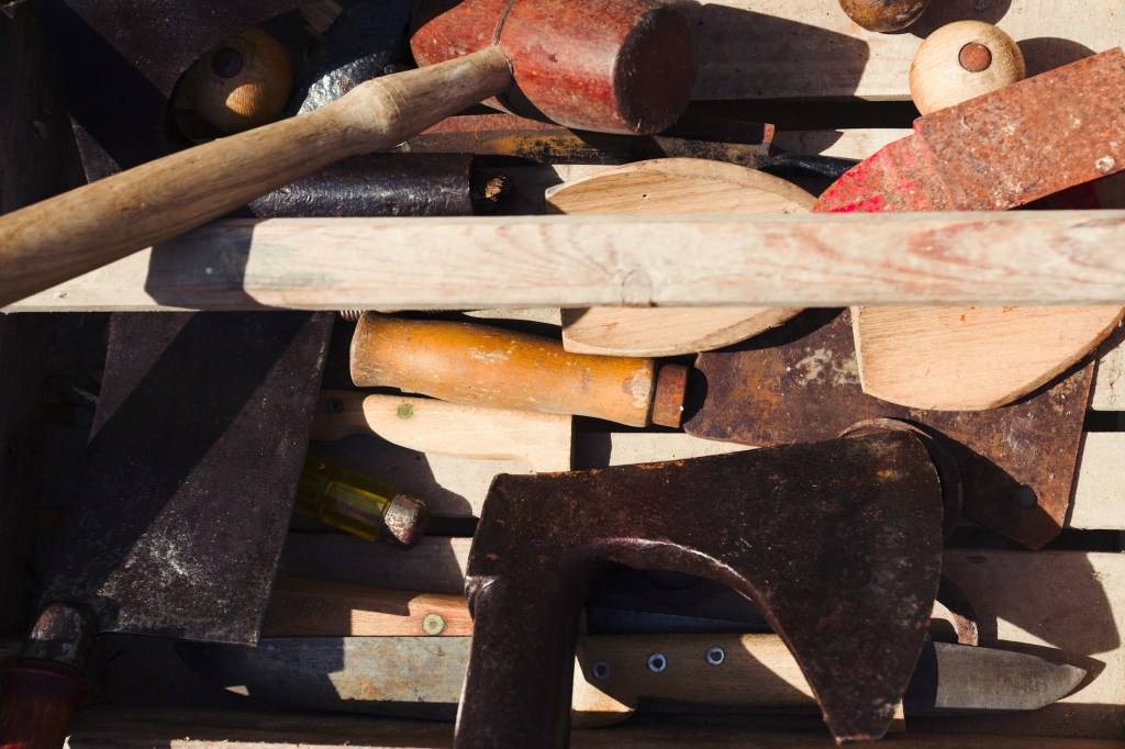 John’s work tools lie on a steel-framed storage rack in the basement of my new home. Even though I hardly ever use them, I sometimes go to look at the bottles labeled in his handwriting with the different size nails and screws. From time to time when I need to fix a leaking tap or hang a new photo, I pick up a wrench or hammer and hold it close to my cheek. Then I take a breath and hear John’s voice. “Take it easy and watch your thumb.”